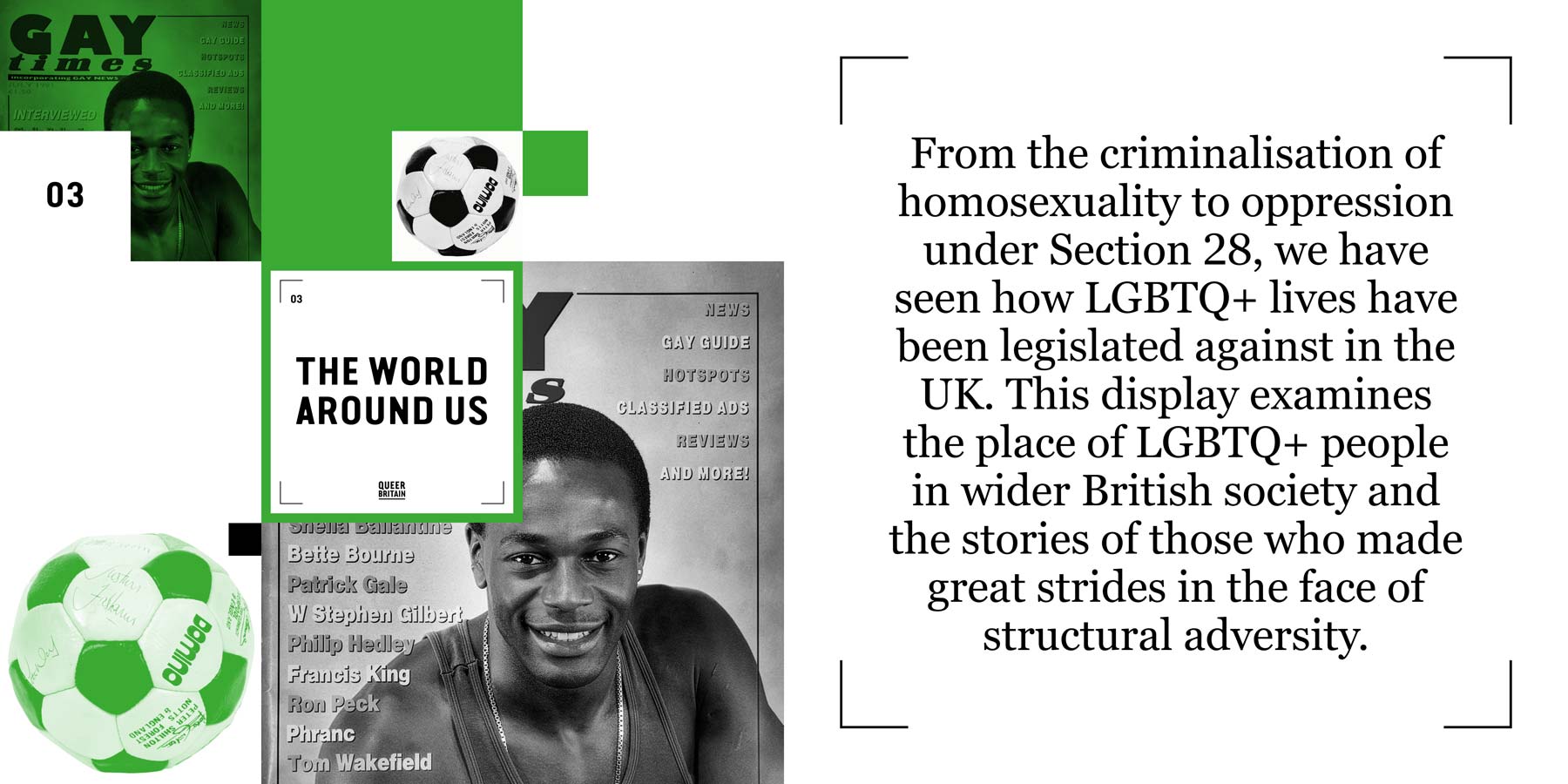 Opening 4 February, journey through queer culture and heritage in our galleries at Queer Britain. Our gallery redevelopment features a takeover from BFI Flare, with early promotion and annual posters celebrating the landmark film festival's 40-year history. The main gallery presents six new themed displays that tell the stories of the Black Lesbian and Gay Centre, AIDS Quilt 23, Justin Fashanu, Women's Liberation Music, Club Kali, and Dora Carrington and Lytton Strachey. In our temporary exhibition space, modern print culture is explored through Queer Britain's own collections in Queer Print.